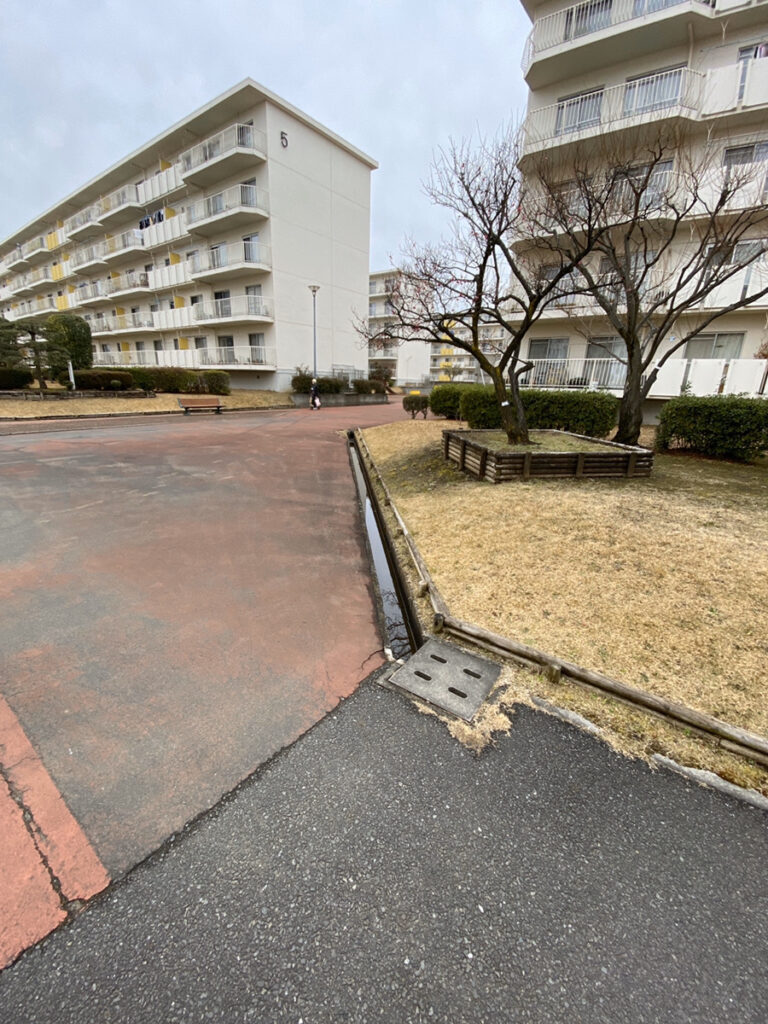 団地は「まちづくり」を前提に設計されており、敷地内に緑地・遊歩道・商店街・学校などが配置されています。そのため、敷地の広さが必要なため郊外や駅までバスで移動が必要な距離に配置されている事も多いです。