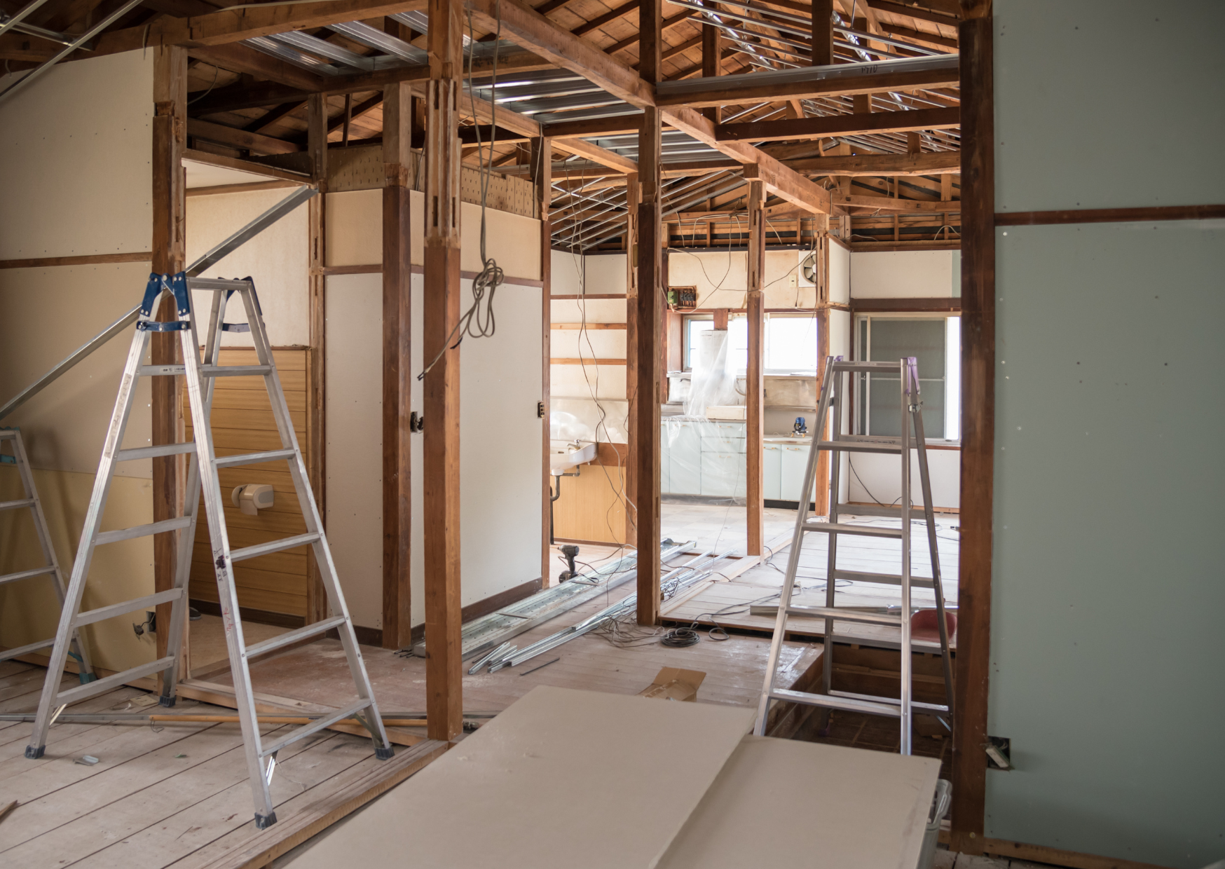 間取りを大幅に変える、室内の全てを解体して入れ替える、そういった大規模なリフォーム工事をリノベーション工事と言います。リフォームと異なり、工事期間も工事費用もかかるので、しっかりと準備をして進めていきましょう。