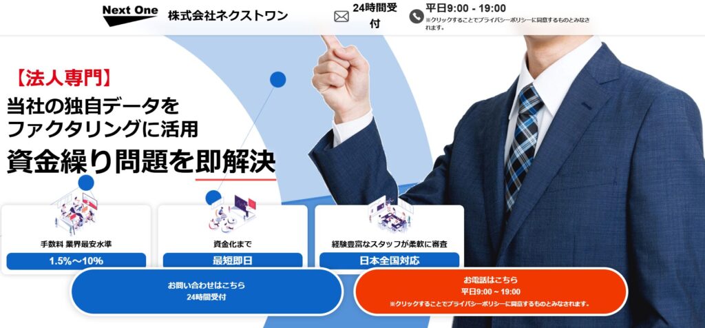 WEB契約で資金化できます。資金調達は【ネクストワン】