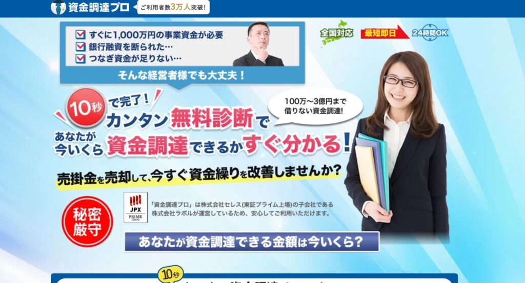 上場企業グループが運営する【資金調達プロ】