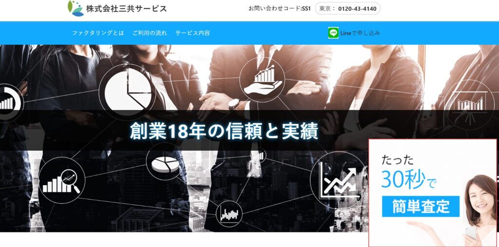 三共サービスは創業が2001年の実績の多くあるファクタリング会社です。