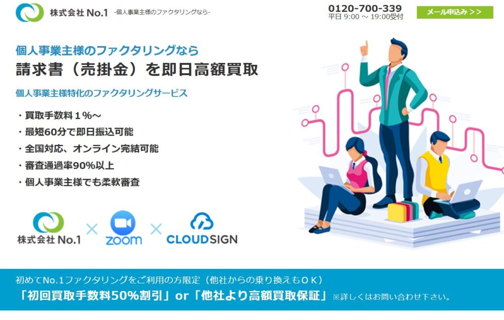 ネクストワンは法人専門のファクタリングサービスを提供しています。企業などが保有する売掛債権をファクタリング会社に譲渡し、譲渡代金をファクタリング会社が支払う資金調達を支援します。