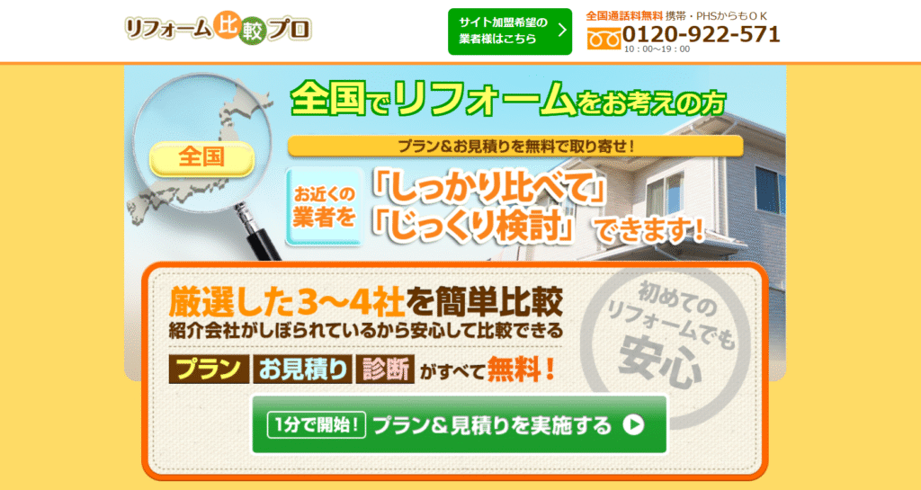 リフォーム比較プロはサイトクロス張替えなどの小さなリフォームから全面改修まで 全て対応しているサイト開設から累計利用者数30万人を超える総合リフォーム比較サイトです。