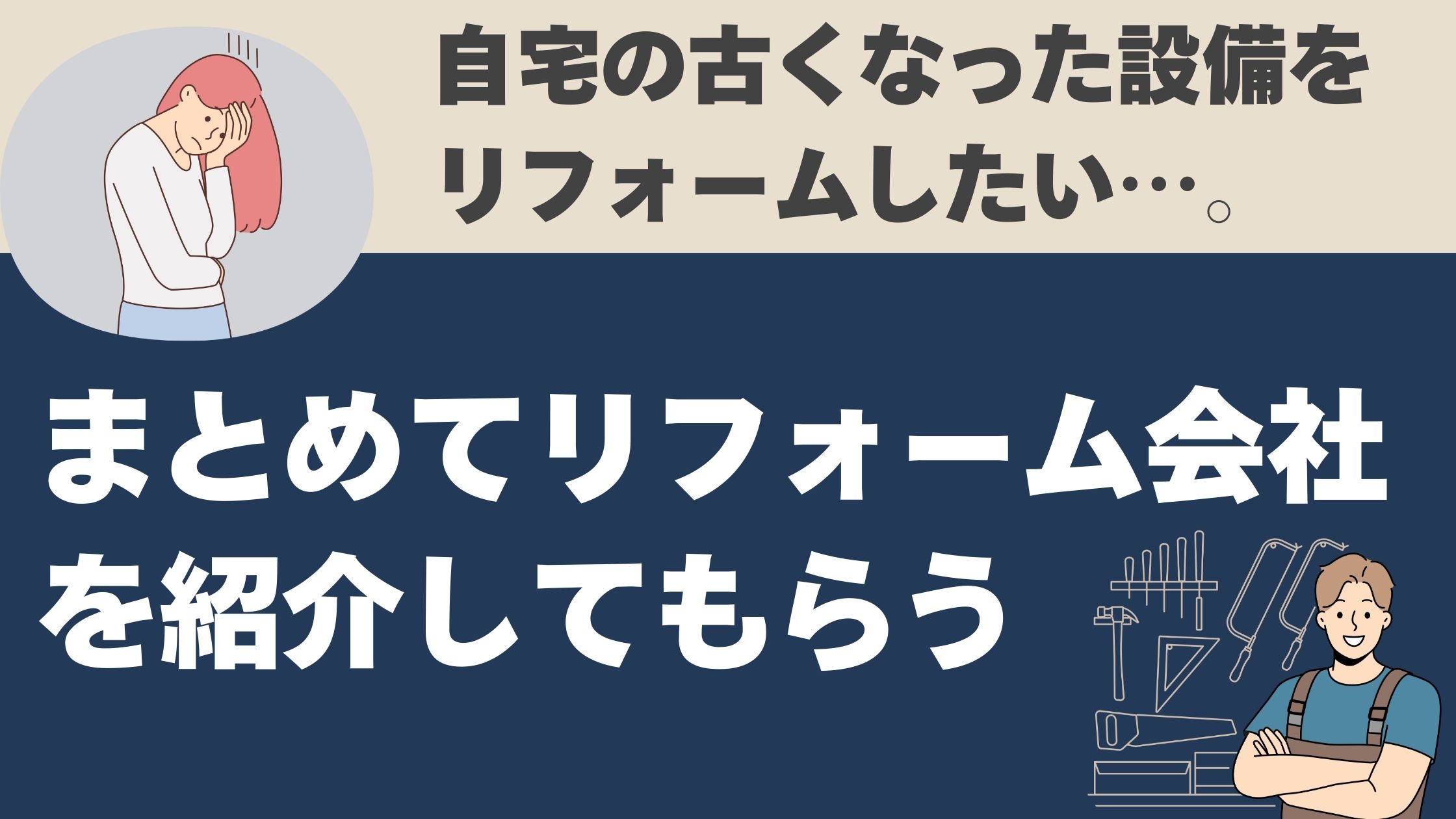 大規模な間取りを変える工事や、室内の全てを解体して作り直す、リノベーション工事ではなく、トイレの交換やお風呂の交換等の部分的な修繕工事であるリフォーム工事を検討している方は複数のリフォーム会社から比較して見積りが取れるサービスがおすすめです。