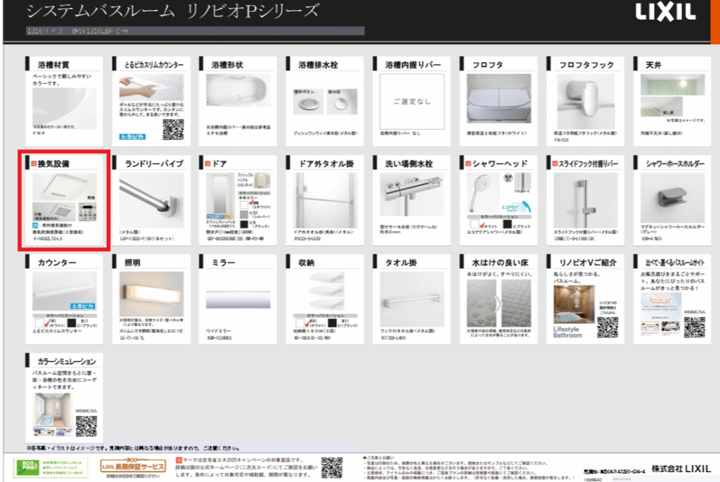 メーカー名と品番は「LIXILリノビオP」と記載されていて、カタログ資料も添付されていた。だが、この資料だけでは、本当に希望した設備が全て入っているかわからない。